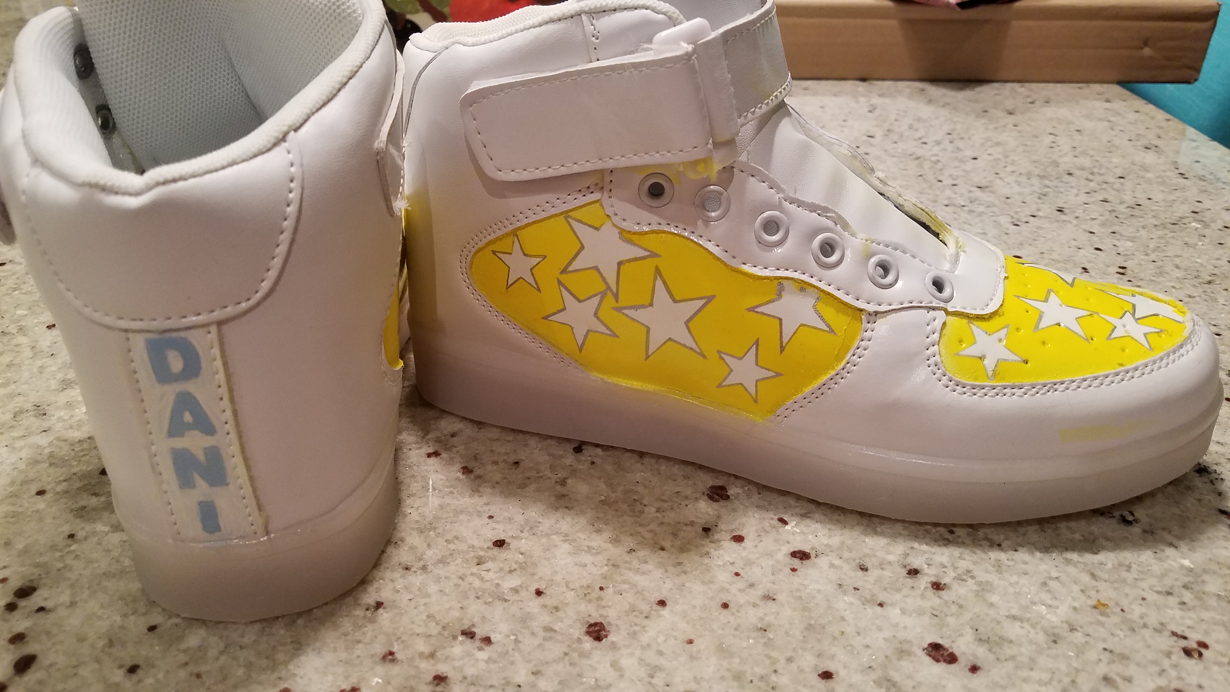 Our friend’s daughter was going to have her Bat Mitzvah in May of 2020. She wanted a pair of custom kicks, which she designed. But, Covid 19 quashed those plans. Maybe next year.